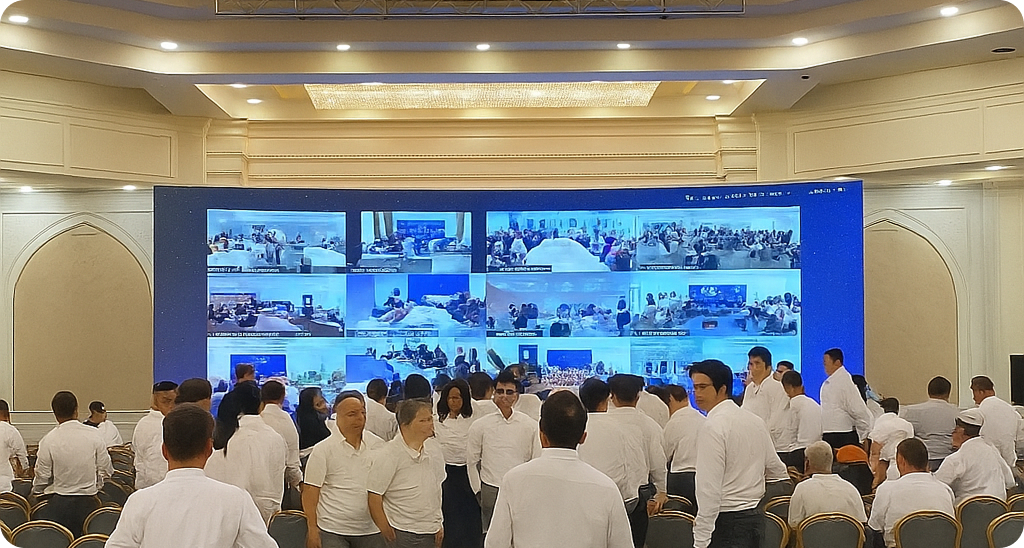 Biz oflayn va onlayn ishtirokchilar uchun qulay sharoitlar yaratdik: barqaror tasvir, sifatli ovoz va mukammal yoritish. Har bir detal tadbir atmosferasini yetkazish va barcha ishtirokchilarni bir platformada birlashtirish uchun puxta o‘ylab chiqildi.